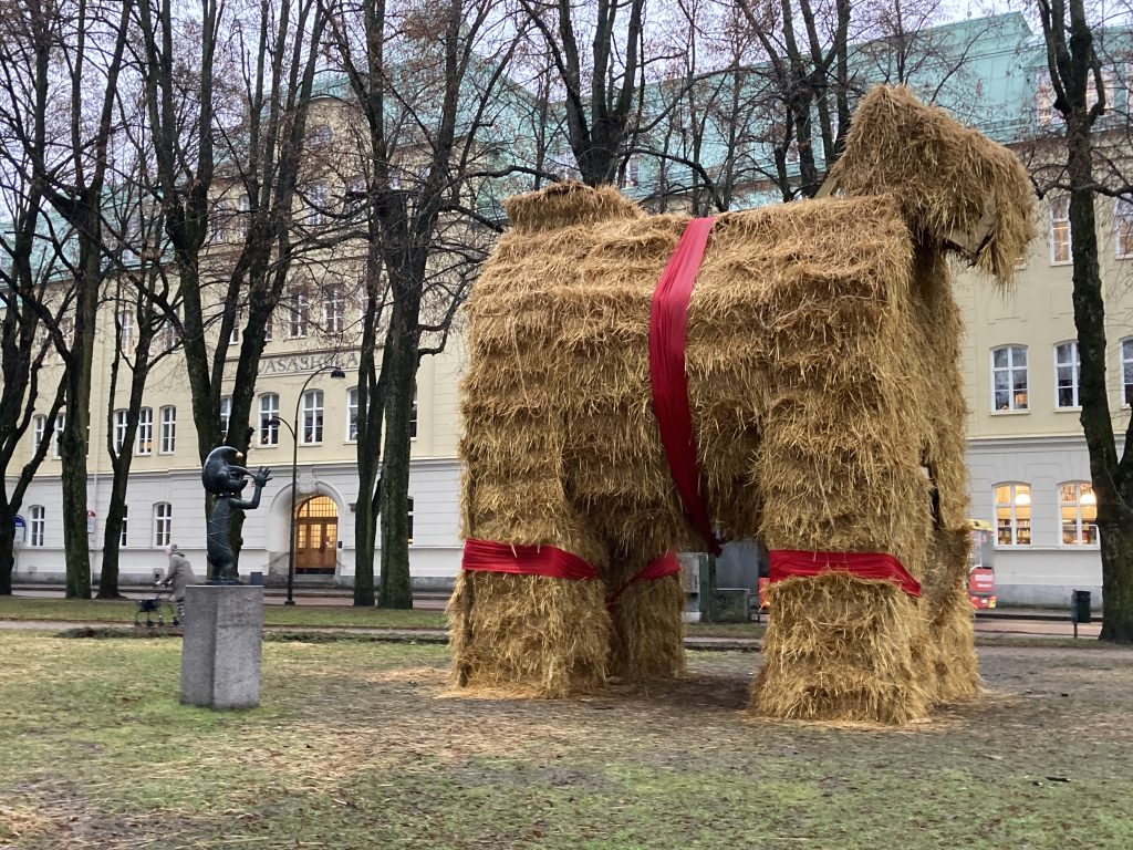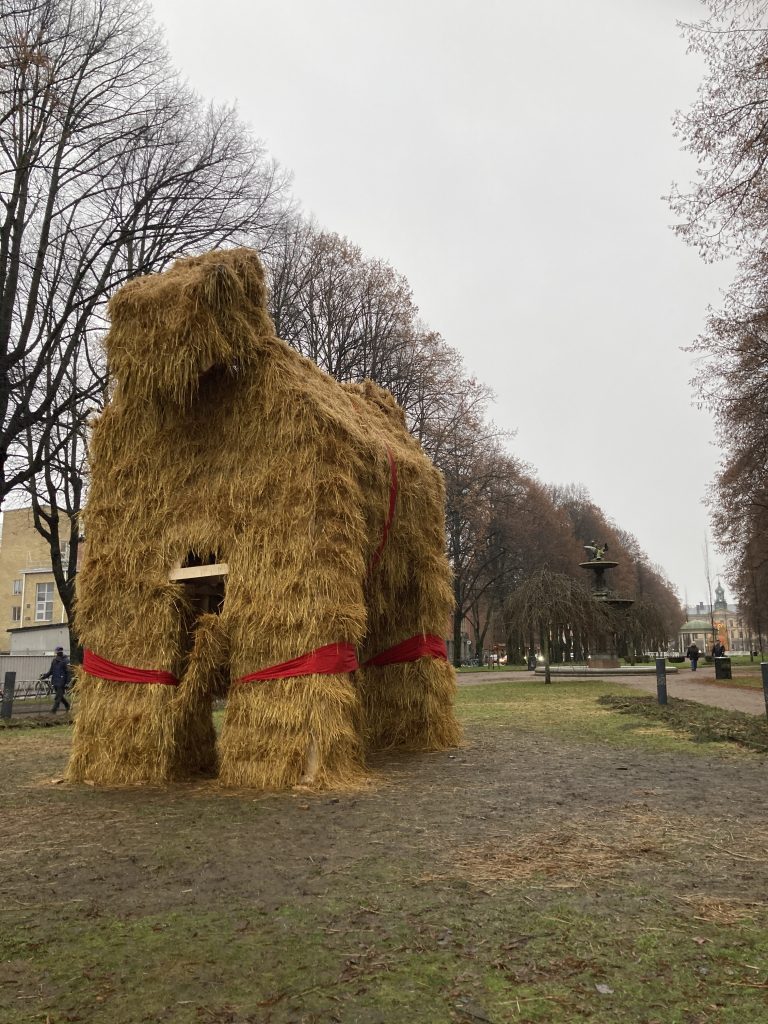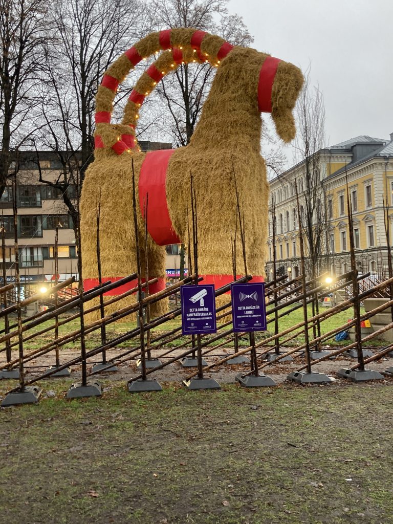En mindre smickrande bild av Lillbocken, men långt bort i bilden skymtar stora julbocken.